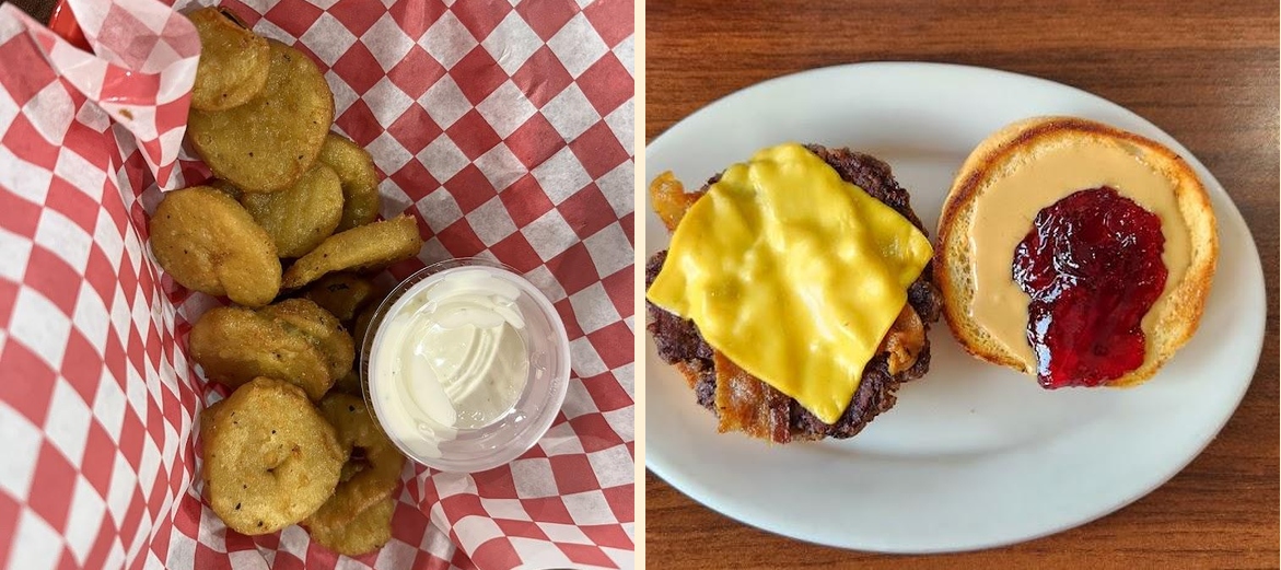 The menu includes hotdogs, fresh beef burgers, BLTs, club sandwiches, grilled cheese, and fried pickles. There’s something for everyone.